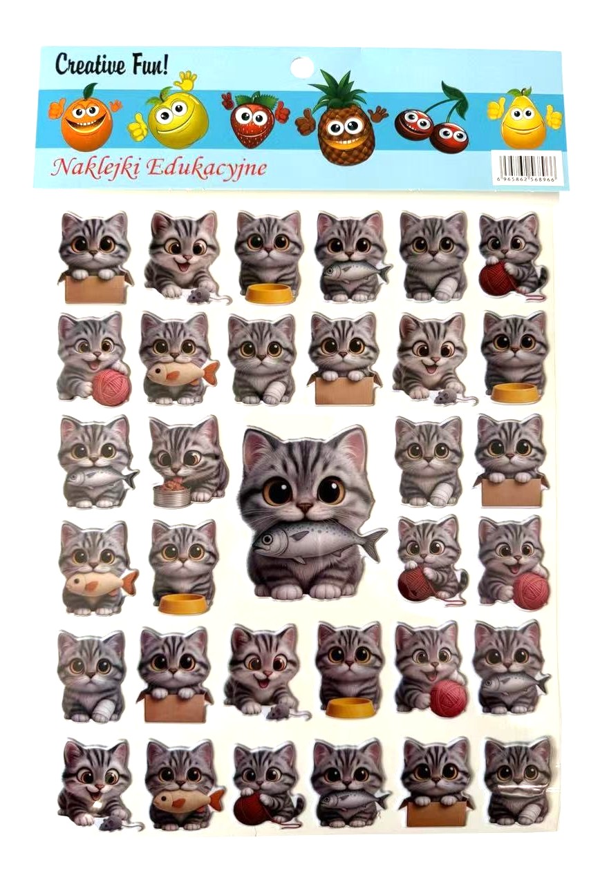NAKLEJKI DEKORACYJNE PUFFY KOTEK Z RYBKĄ