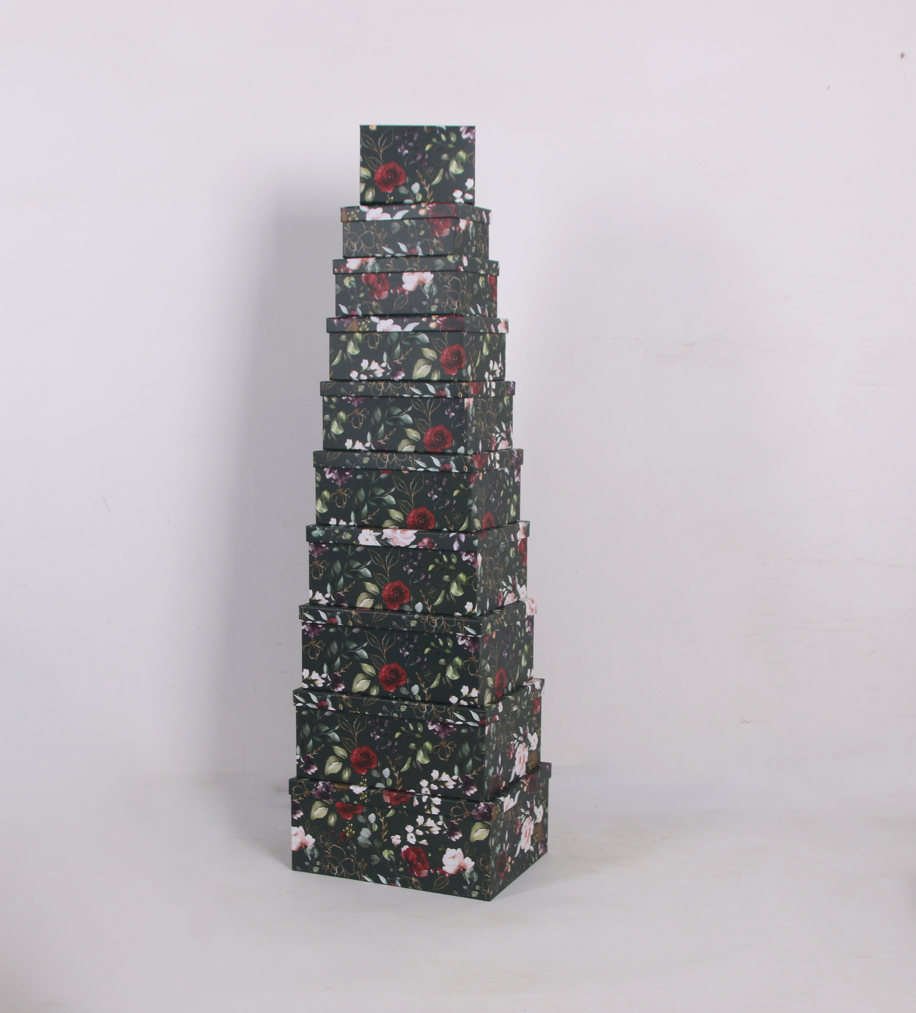 PUDEŁKA OZDOBNE 10 SZT KPL. WYMIARY: PUDEŁKO NAJMNIEJSZE 7,5CM/18,5CM/13CM PUDEŁKO NAJWIĘKSZE 16,5CM/37,5CM/28,5CM. CENA ZA KPL 10 SZT.