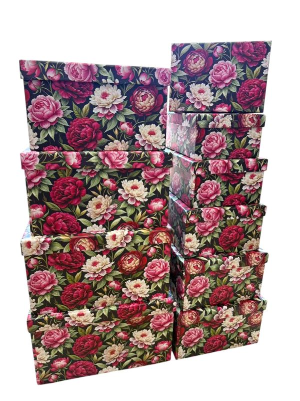PUDEŁKA OZDOBNE 10 SZT KPL. WYMIARY: PUDEŁKO NAJMNIEJSZE 7,5CM/18,5CM/13CM PUDEŁKO NAJWIĘKSZE 16,5CM/37,5CM/28,5CM. CENA ZA KPL 10 SZT.