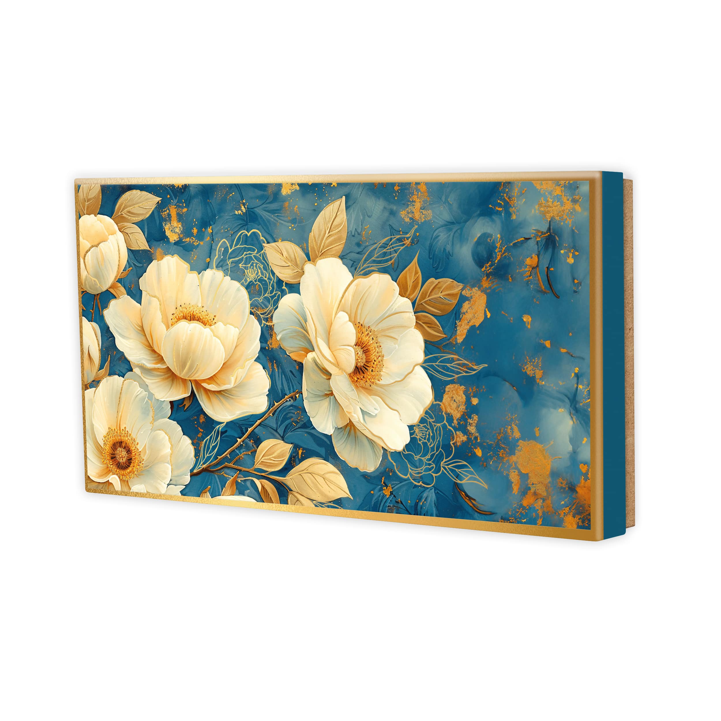 Złocone wieczko – wzór kremowych kwiatów z elementami złota tworzy ekskluzywny efekt wizualny.
