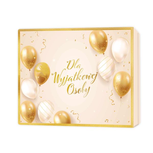 - Dołączona karteczka z życzeniami – w zestawie znajduje się kartka z miejscem na dedykację i podpis, co podnosi wartość użytkową pudełka i zachęca do zakupu gotowego zestawu prezentowego.