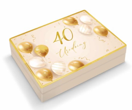 Wysokiej jakości pudełko prezentowe ze złotą cyfrą to wyjątkowe rozwiązanie dla sklepów, kwiaciarni, księgarni i innych punktów sprzedaży, które oferują upominki na urodzin. Jego elegancki design, uszlachetniony złoceniami i nowoczesnym matowym wykończeniem, sprawia, że każdy prezent zyskuje luksusową oprawę. Motyw złotych balonów połączonych z czernią to hit, który szybko znika z półek.