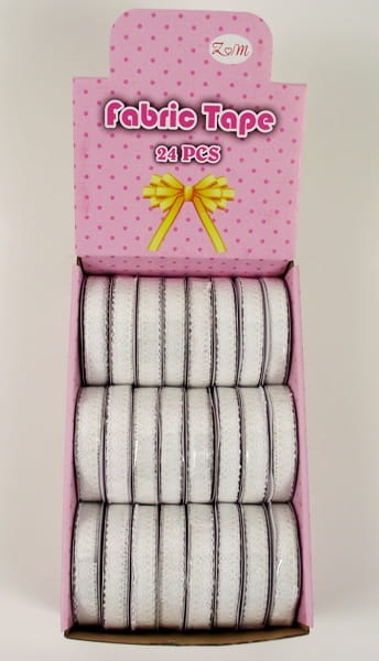 TAŚMA 2 m, Z MATERIAŁU Z KLEJEM. KOLORY:BIAŁY I KREMOWY (pół na pół).Minimalne zamówienie 24 szt lub wielokrotność 24 szt.